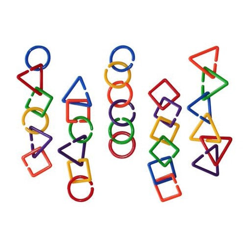 Loop these shapes together and learn all about shapes and colours, or practice counting, math, sorting and sequencing.