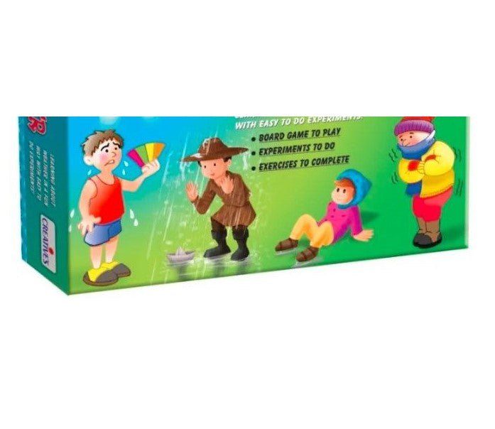 The pack includes: An Activity Book, A multicolour Play Board, 30 Question - Answer cards, Weather Watch Chart and Weather Clothing Cards.Children can perform various experiments given in ‘Experiment cum Activity Book’ to know and understand what makes the weather change and what should be done when its change.
