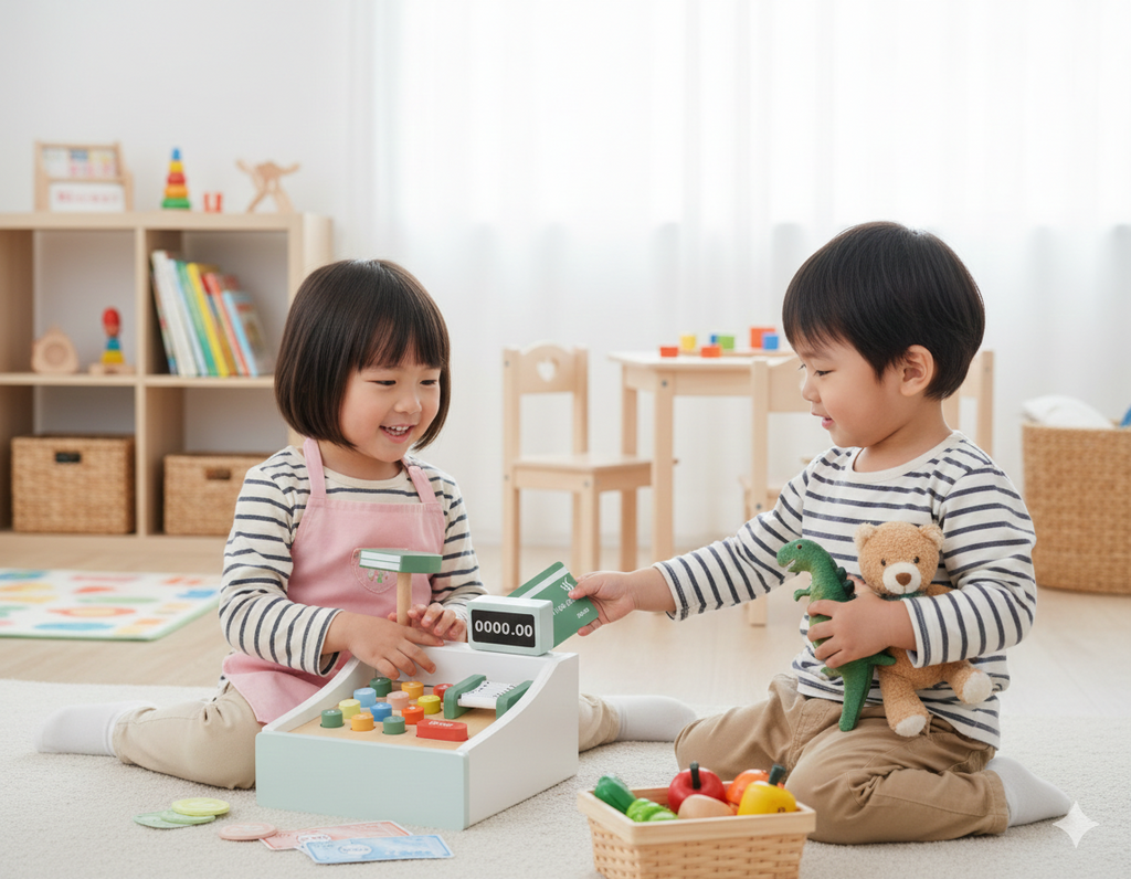 This amazing set comes with money and credit cards – the perfect pretend-play set for little shopkeepers, budding bankers, and mini market masters!