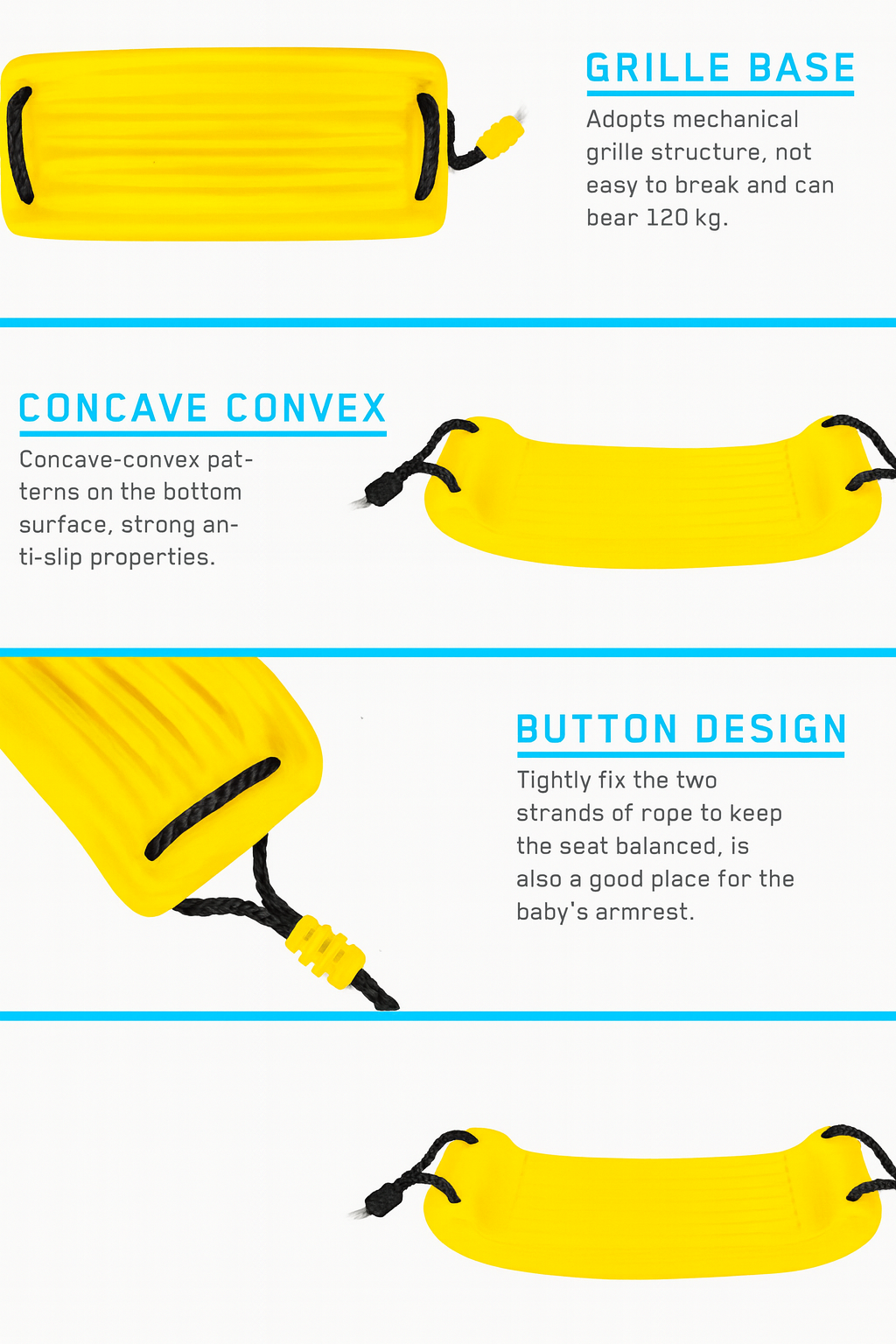 Durable PE seat and rope components built for long-lasting outdoor use