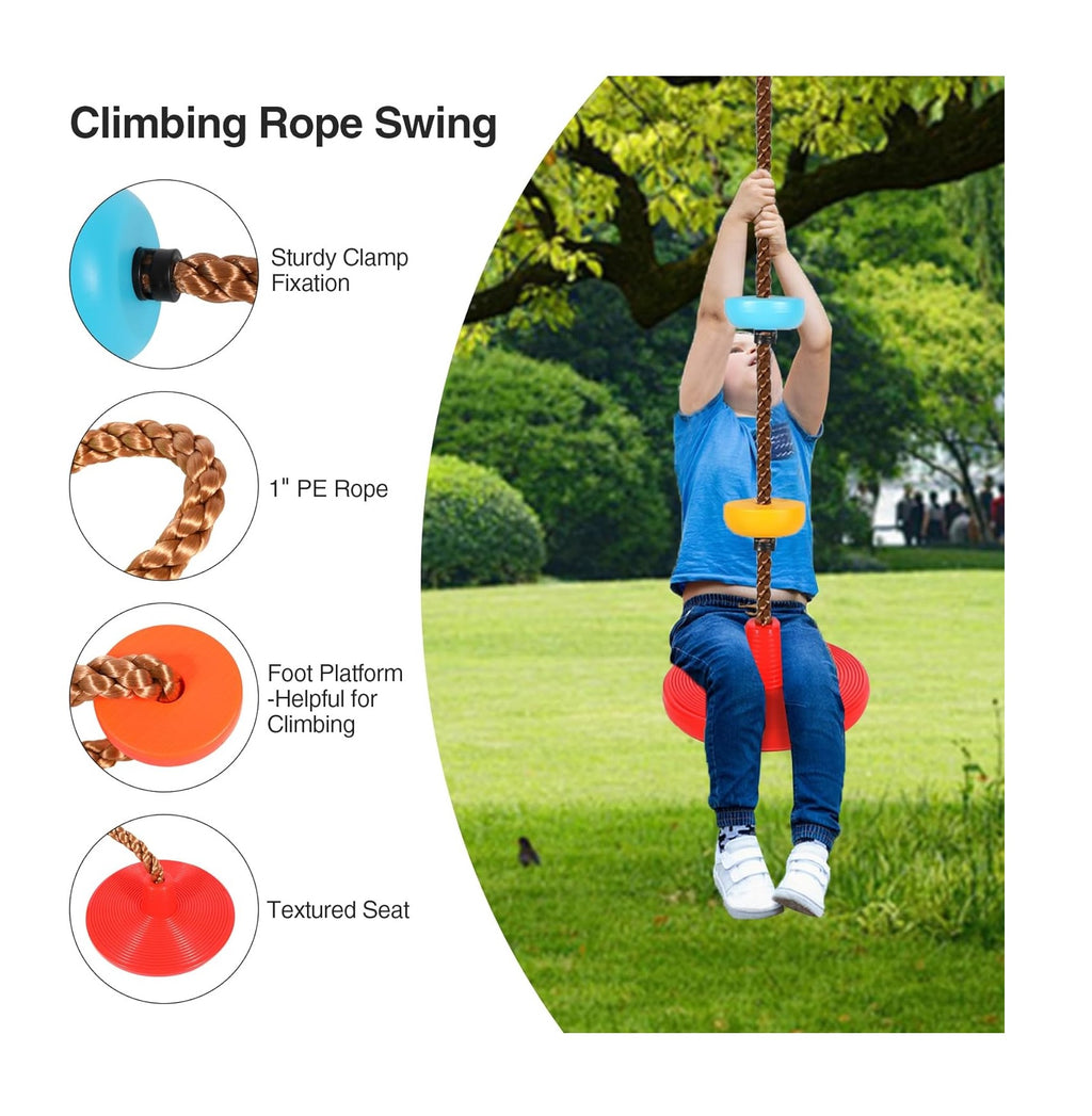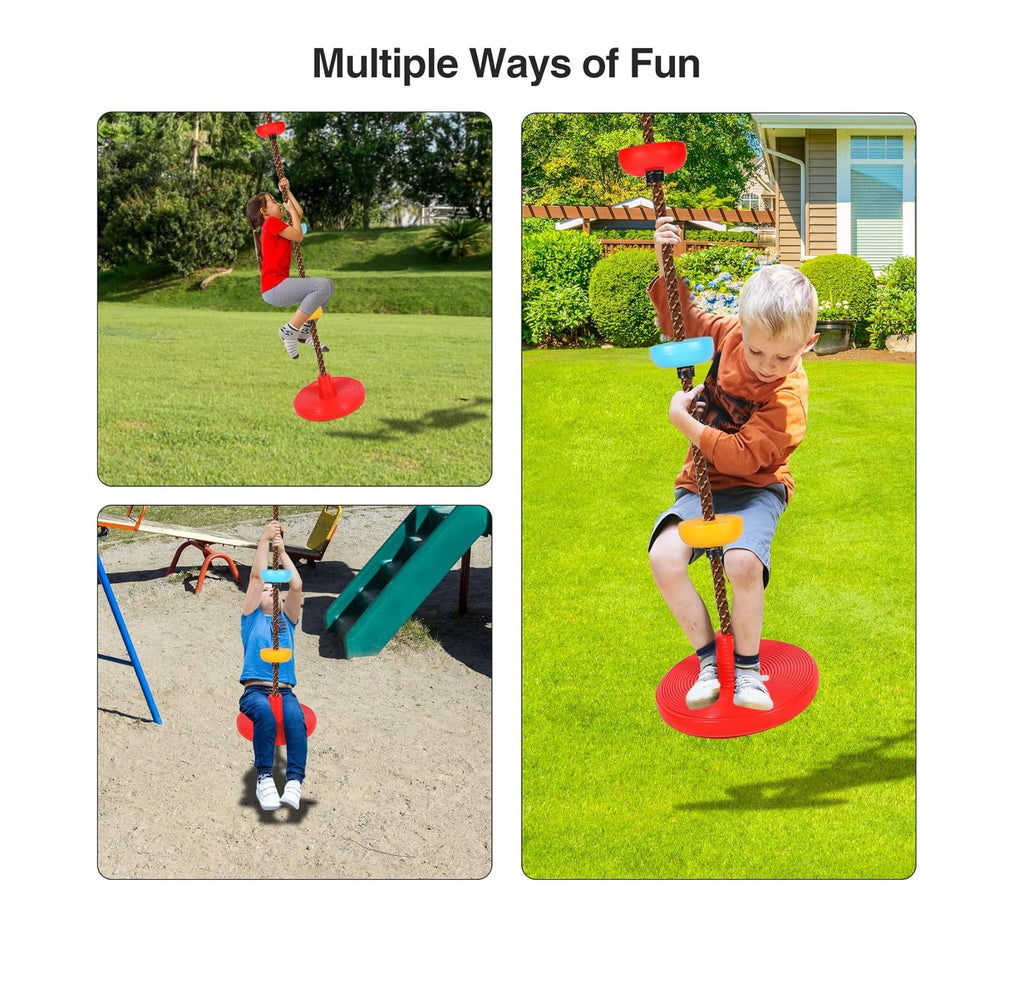 PLAYFREE Large Red Disc Swing with 2m Climbing Rope & Platforms