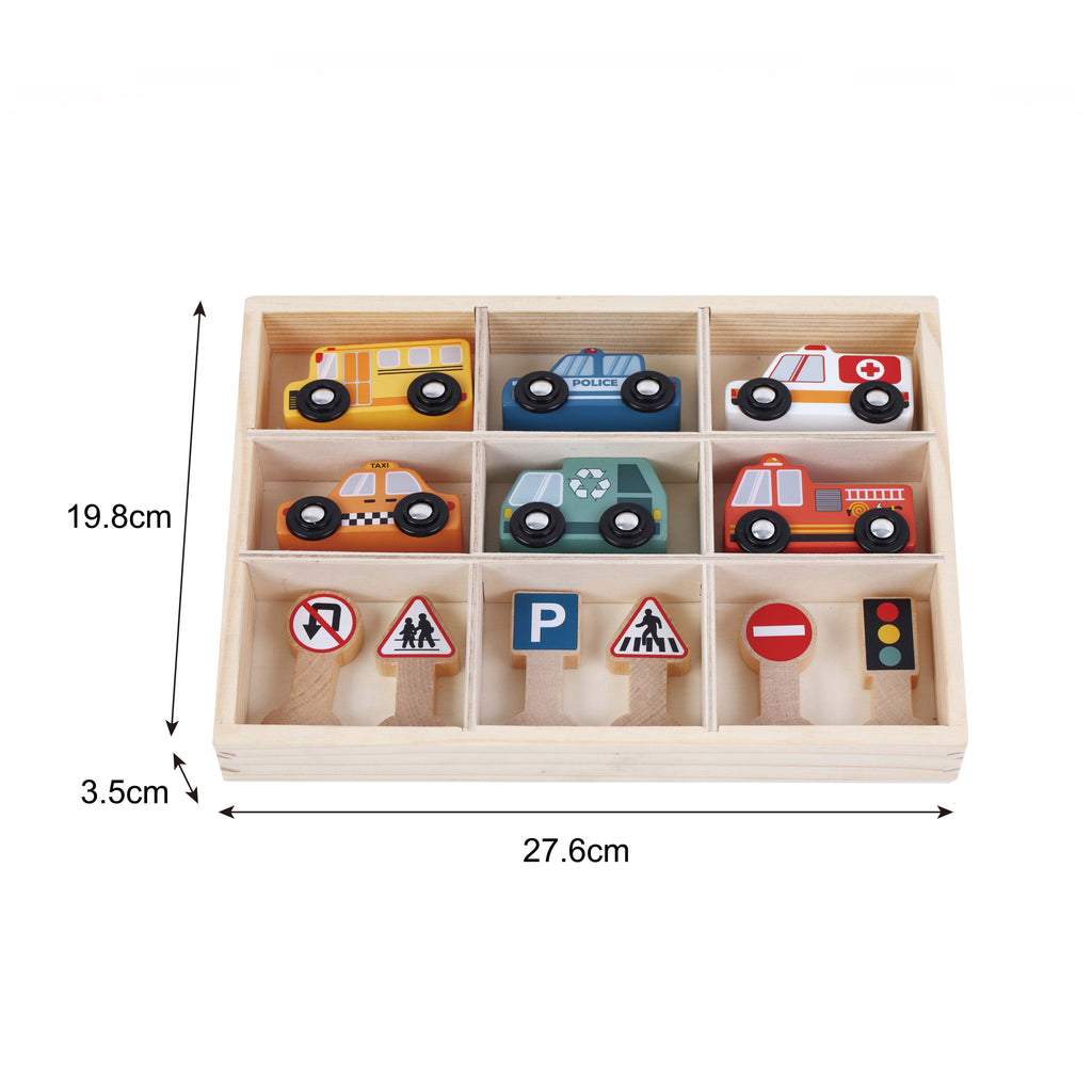 The only thing better than a toy car is a whole fleet of them—with signs to guide the way! Zookabee’s Wooden Vehicles & Traffic Signs Set is perfect for toddlers and preschoolers who love things that go. This 12-piece set includes six vibrant vehicles—School Bus, Police Car, Ambulance, Taxi, Garbage Truck, and Fire Engine—paired with six essential traffic signs like No U-turn, Pedestrian Walking, Parking Reserved, Pedestrian Crossing, No Entry, and a classic Traffic Light.